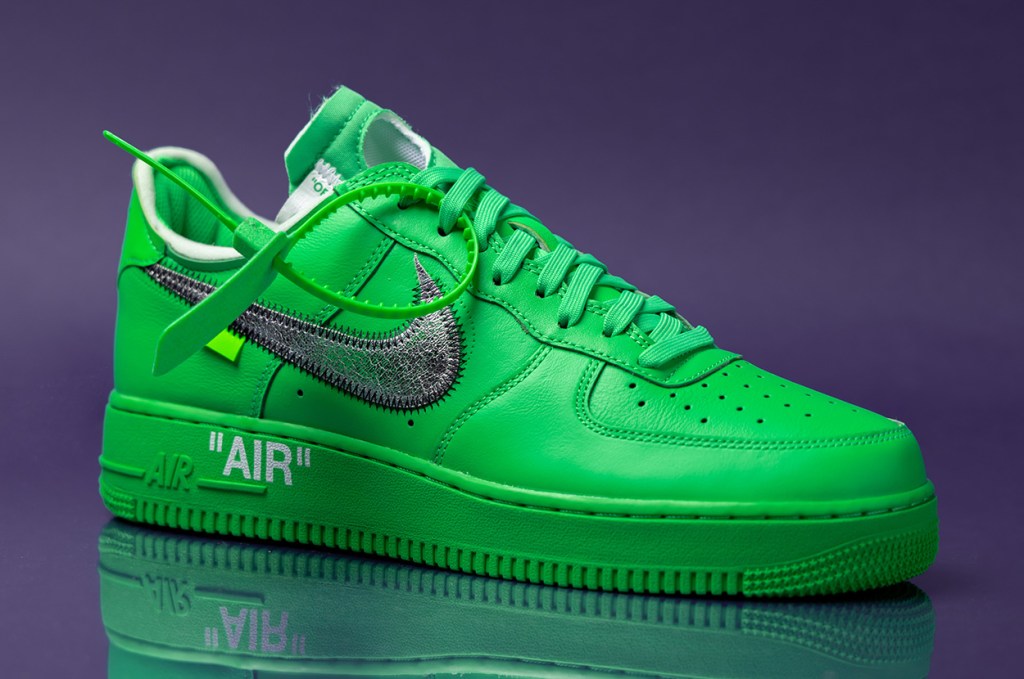 Just after debuting “The 10” in 2017, Abloh and Nike ran back their collaboration in early 2018 when they released a colorway of the Air Force 1 Low exclusively at New York City’s Museum of Modern Art. The mostly black colorway was extremely desirable coming on the heels of “The 10,” but also extremely hard to come by. Fans who missed out on the shoe were later given additional chances at owning an Air Force 1 in a similar color block when the blue Off-White x Nike Air Force 1 Low “MCA” dropped in 2019, followed by a yellow version released to synchronize with the opening of Abloh’s “Figures of Speech” exhibit at Boston’s Institute of Contemporary Art in Summer 2021. The “Brooklyn” in green, released to celebrate the opening of an Abloh exhibit at the Brooklyn Museum in 2022, is the final version of this AF1 style to date.