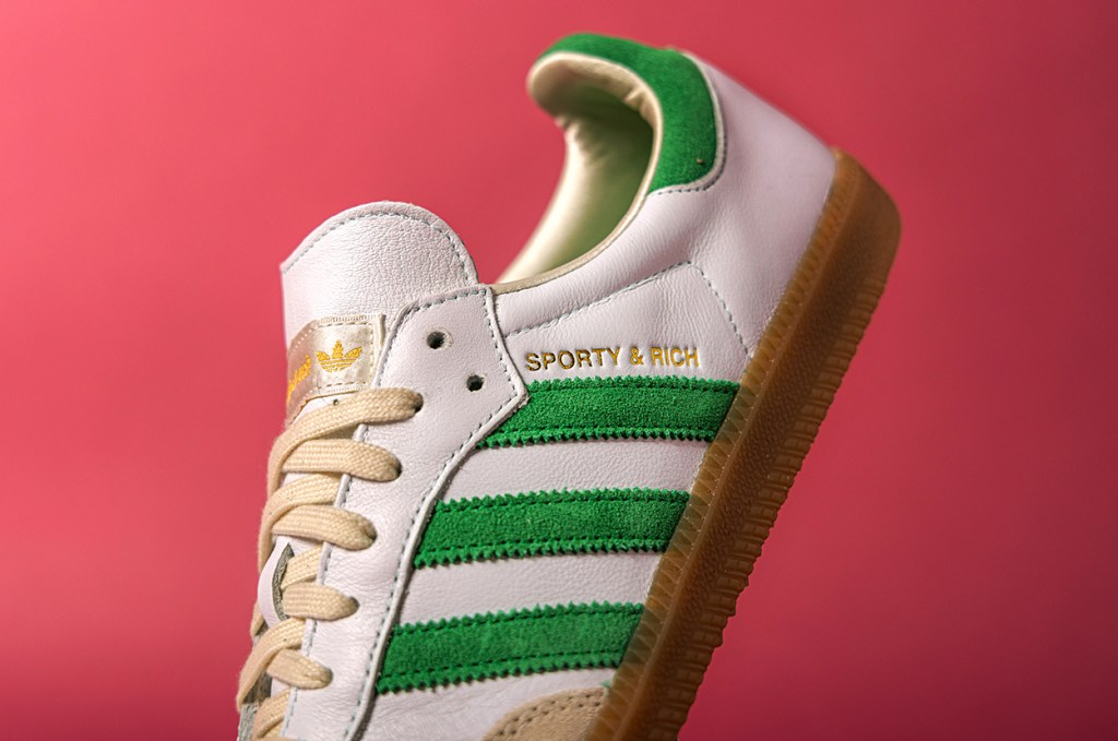 Along with those celebrity co-signs, collaborations have also contributed to the adidas Samba’s rise to stardom. Grace Wales Bonner’s collaborative Samba was one of the first Samba projects to land on the in-the-know Instagram moodboard page @hidden.ny. From there, all bets were off, as the likes of Jason Dill, Sporty and Rich, and perhaps most famously, Gucci, all lined up to deck out the retro sneaker as they saw fit.