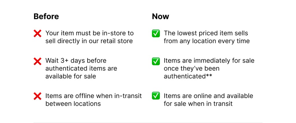 We’re increasing the sell-thru speeds by making items available to sell as soon as they are authenticated.