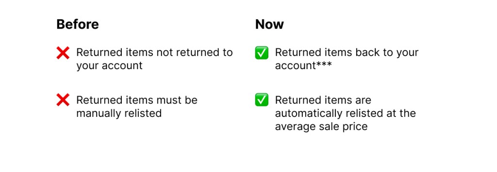 We’re improving our returns policy to take advantage of increased pricing opportunities. Nearly 50% of returned items can be relisted at a higher price than they originally sold for.