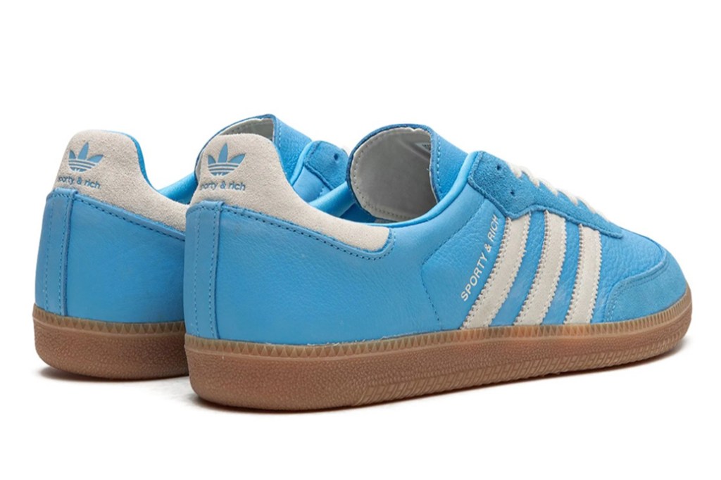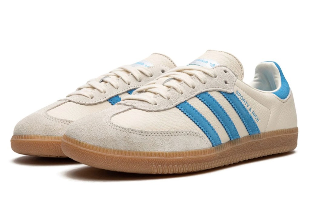 The third and final colorway from Sporty & Rich and adidas’s May 2023 collaboration is the adidas Samba OG “Cream/Blue.” A cream-colored leather upper and “UNC” inspired light blue accenting give this shoe a thoroughly old school look.
