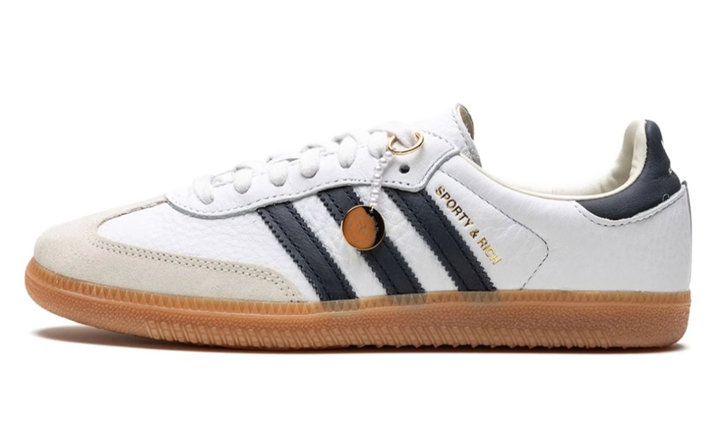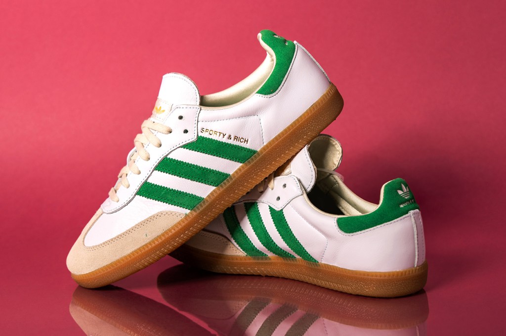 The debut collaboration between Sporty & Rich and adidas was the adidas Samba OG “White/Green,” released in November 2022. The colorway’s white-and-green appearance not only ties into a classic tennis shoe look, but also into Sporty & Rich’s vintage-leaning aesthetic, too. Clearly, the synergy between the two brands couldn’t be more perfect.