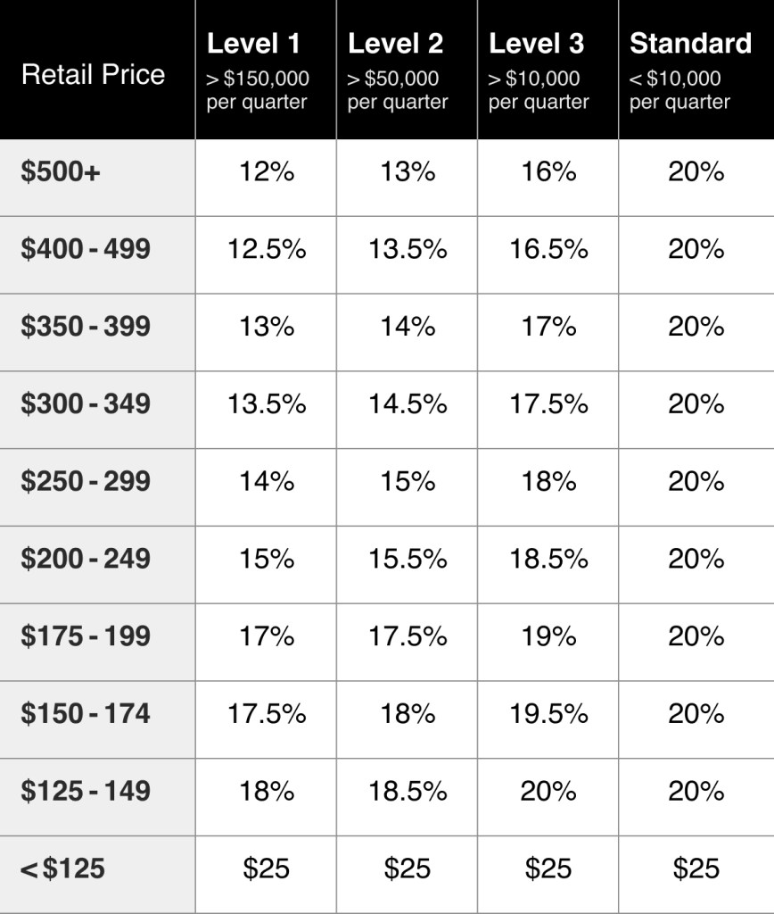 The updated program rates will take effect on July 1st, 2025. Each quarter, your performance (sales volume) will determine if you qualify for a Pro Seller level. As an example, the benefits earned for the quarter July 1 – Sept 30 will be based on performance in the quarter prior April 1 – June 30.
