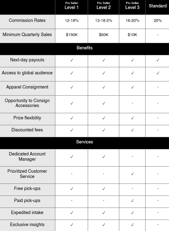 - $0.50 per unit for Pro Seller consignors (levels 1, 2, 3)